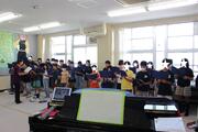 これまでふれあいタイムや朝学習の時間に応援リーダーが各教室を訪問し、学年ごとに行ってきた応援練習を、はじめて運動場で行いました。まだ覚えきれていないところもありますが、リーダーのかすれた声に応えるかのように、どちらの色も精一杯頑張りました。